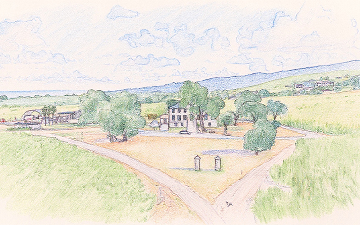 Completely renovated historic cottages in The Village at Prosperity Farm feature modern, yet cozy, cottage-style air-conditioned units where guests can enjoy overnight stays surrounded by the beauty and tranquility of our farm. Also, overlooking the farm is Henderson Villa, a modern 3,500 sq. ft. air-conditioned home with 180-degree views of ocean sunsets.