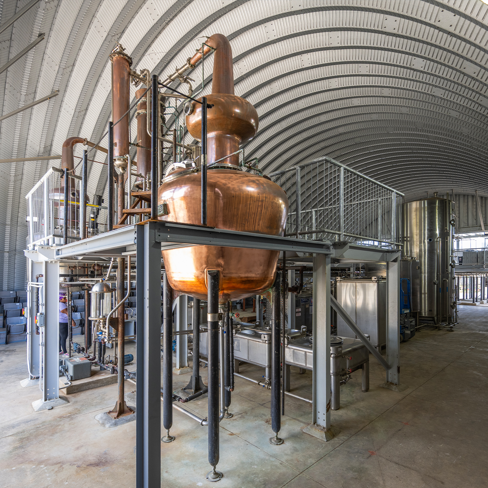 Can visitors sample the spirits produced at the distillery?
